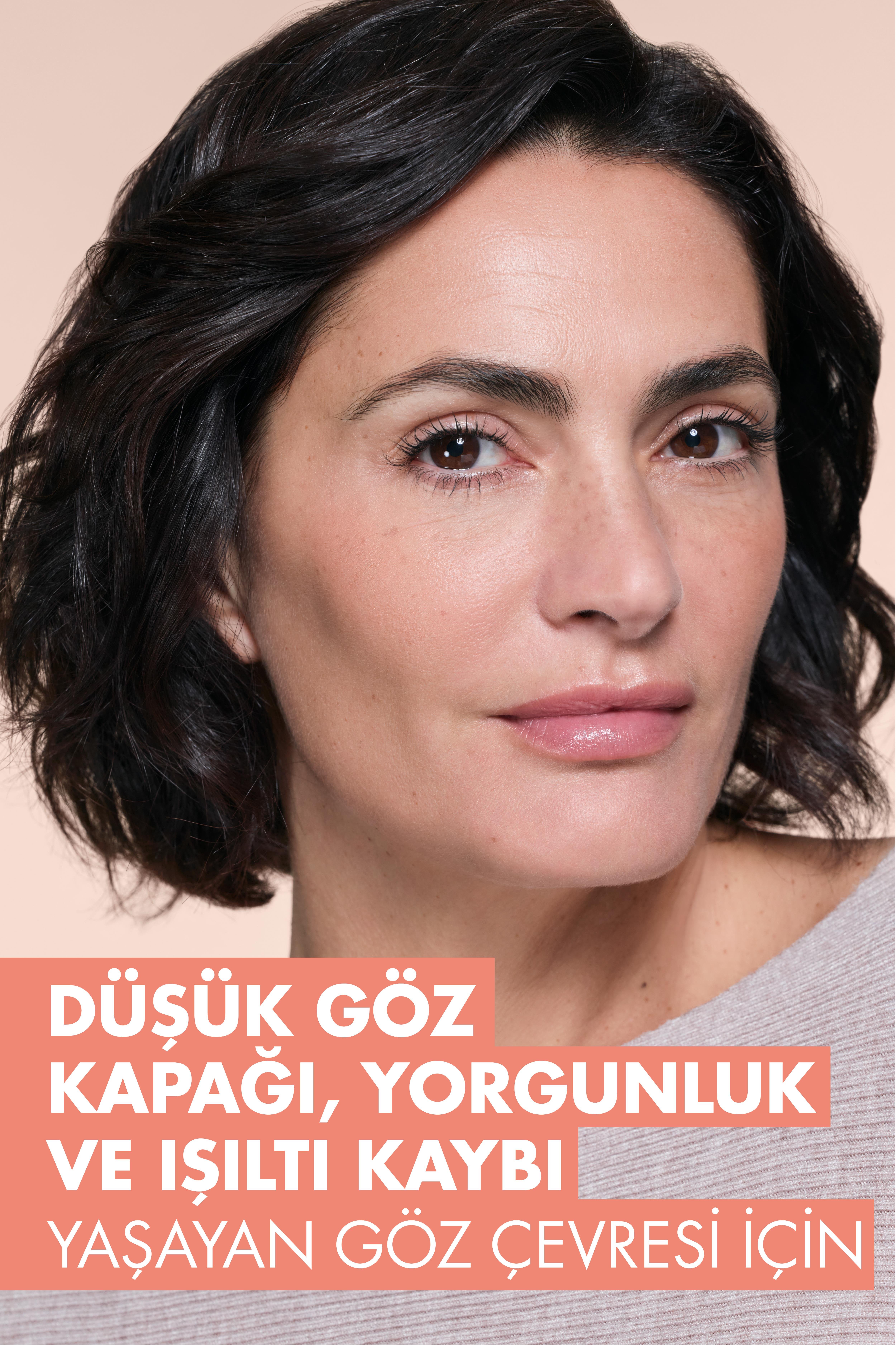 Tüm cilt tipleri için göz çevresinde aydınlatıcı ve canlandırıcı kokusuz göz çevresi bakım kremi.
