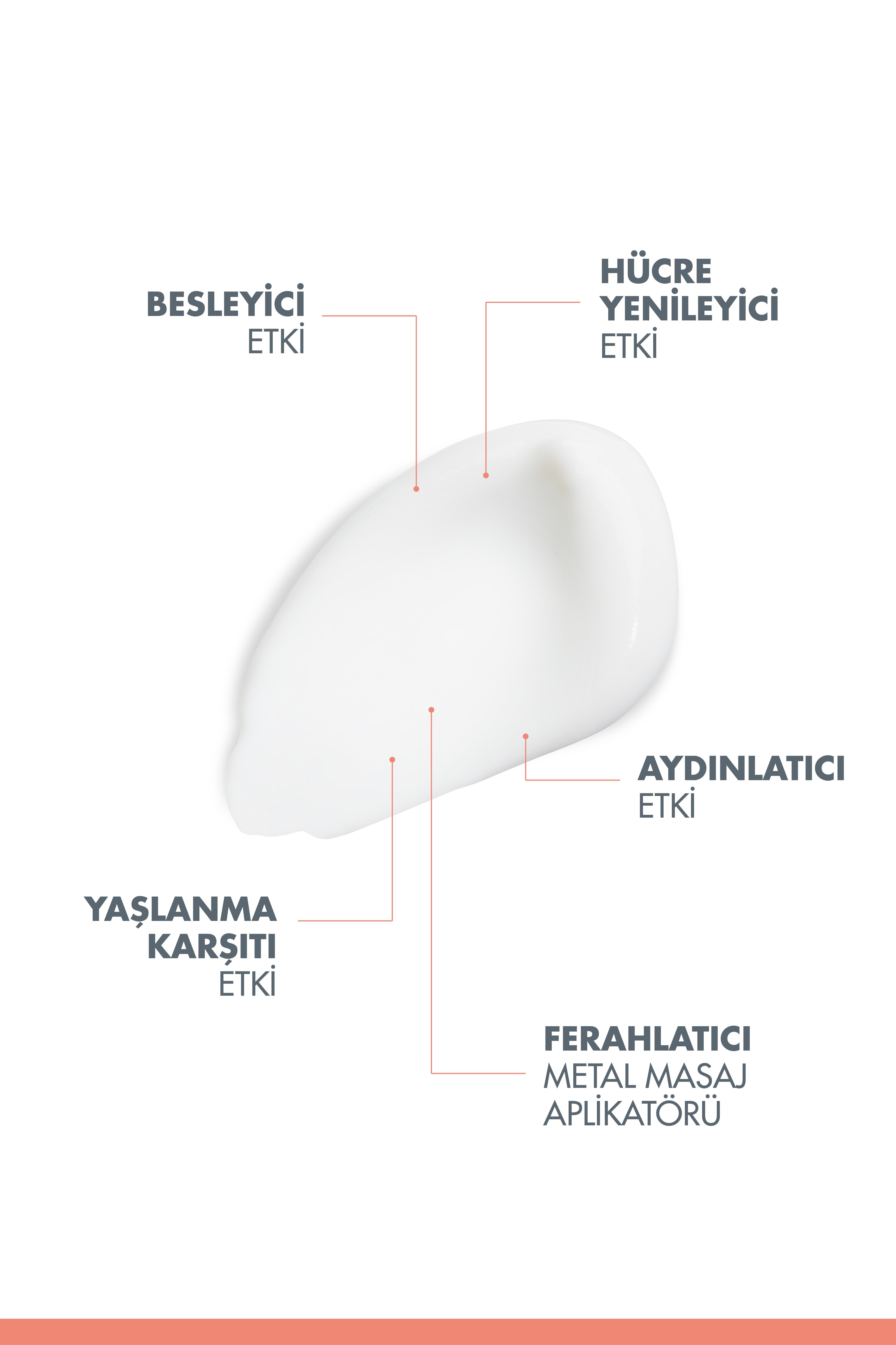 Hassas göz bölgesini canlandırır ve aydınlatır. Göz çevresindeki şişlik ve koyu halkalar için yatıştırıcı etkisi gösterir. Metalik masaj aplikatörü şeklinde başlığı sayesinde ferah bir etki ile göz çevresini aydınlatır.