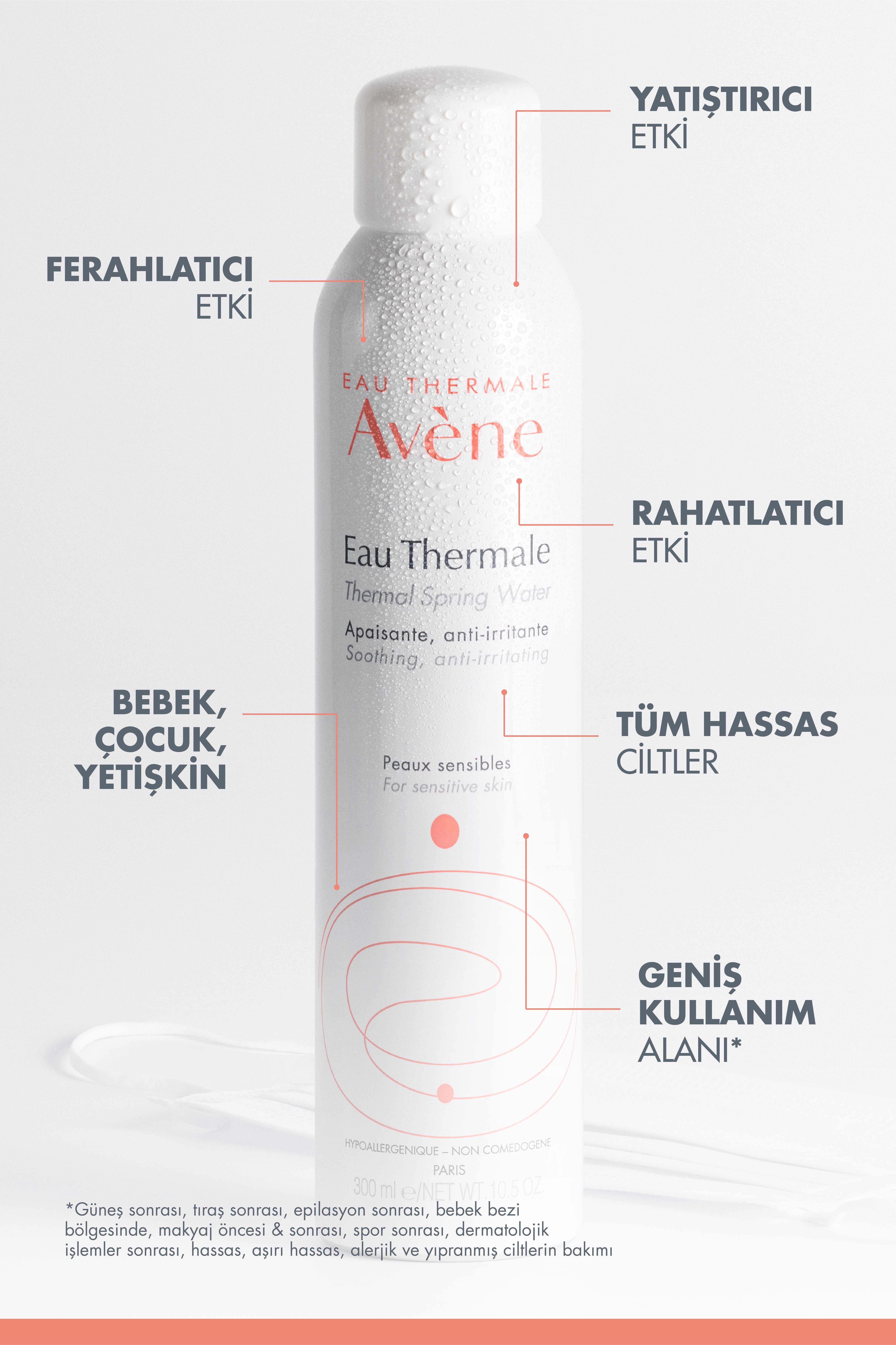 Termal su içeren ve anında rahatlık sağlayan yatıştırıcı sprey.