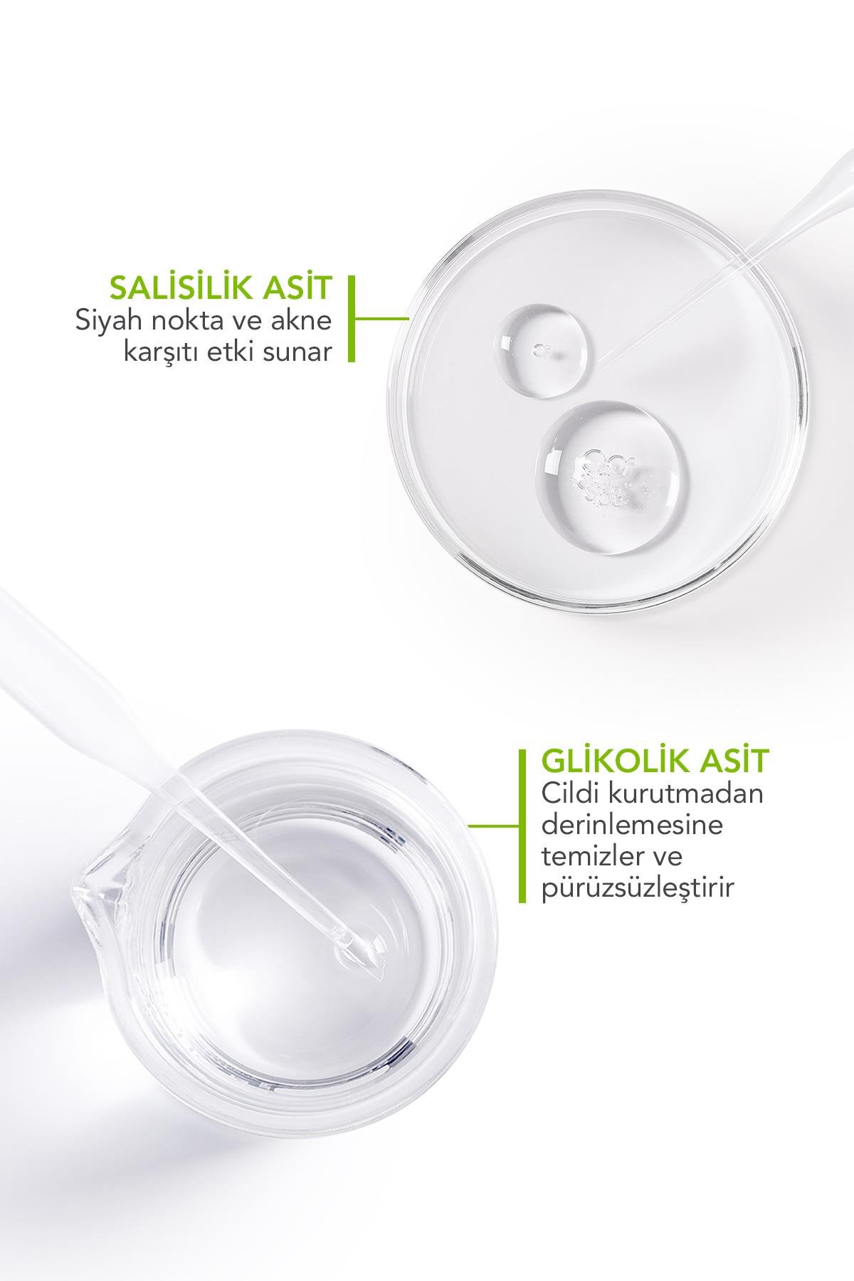 İçeriğindeki salisilik ve glikolik asit sayesinde cildin kurumasını önleyerek temizler ve cildi pürüzsüzleştirmeye yardımcıdır. İçeriğindeki çinko glukonat sayesinde cildin sebum dengesini düzenleyerek arındırır. Tıkanan gözenekleri açmaya, siyah noktaları gidermeye ve sivilce karşıtı etki göstererek oluşumunu önlemeye destek sağlar.
