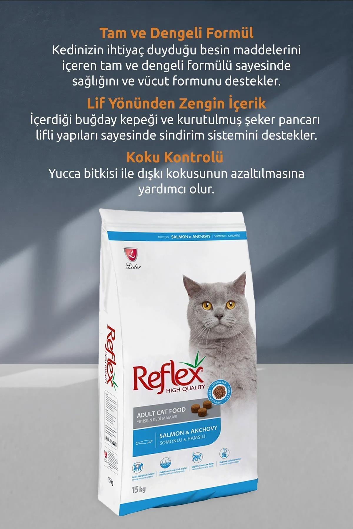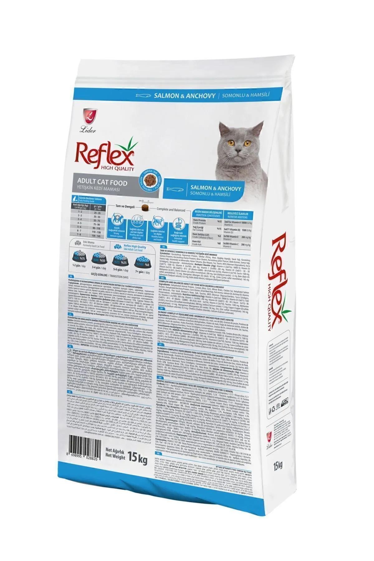 Reflex Somonlu ve Hamsili Yetişkin Kedi Maması 15 Kg (8698995027489)