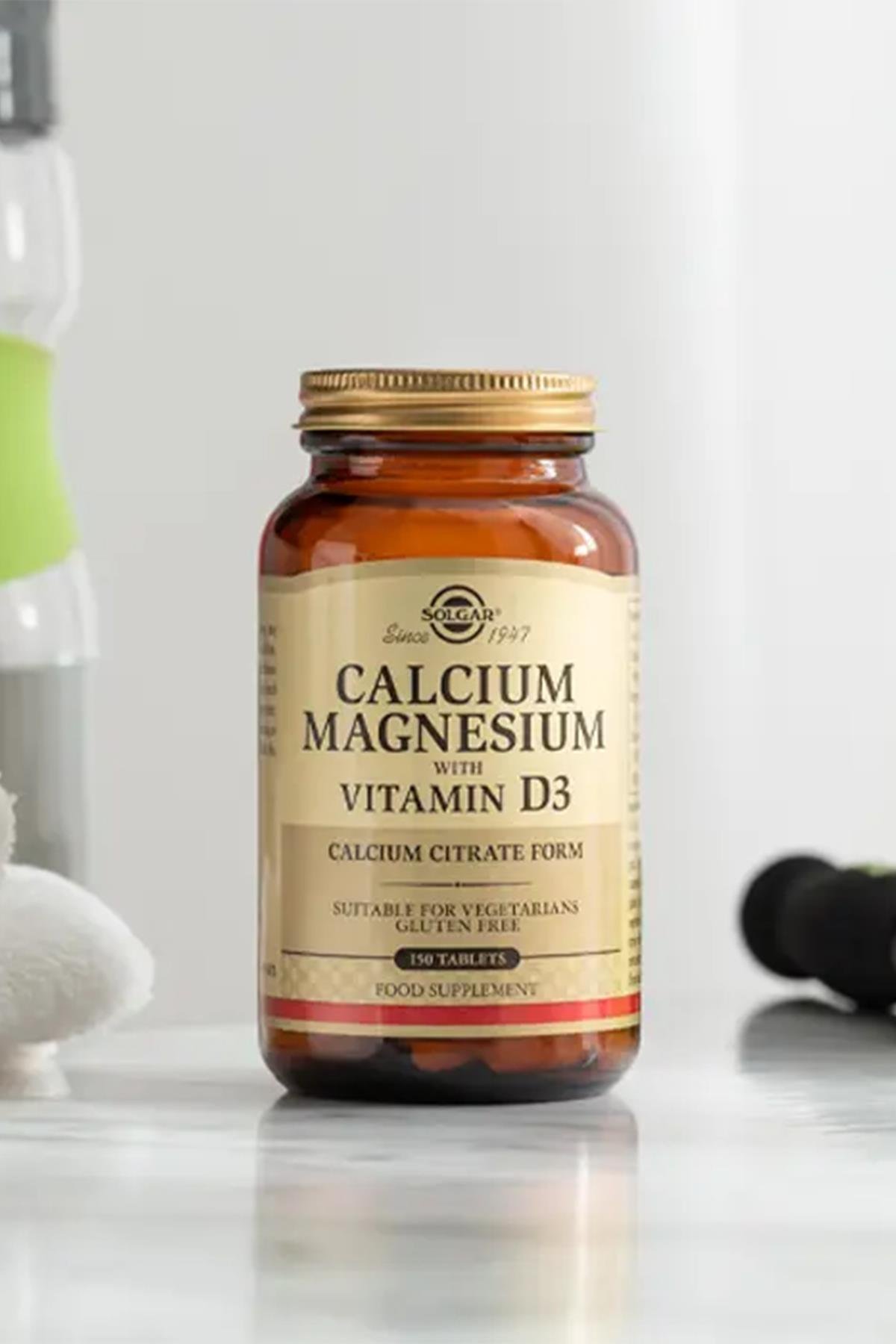 Kalsiyum, magnezyum ve vitamin D3 içeren takviye edici gıda.