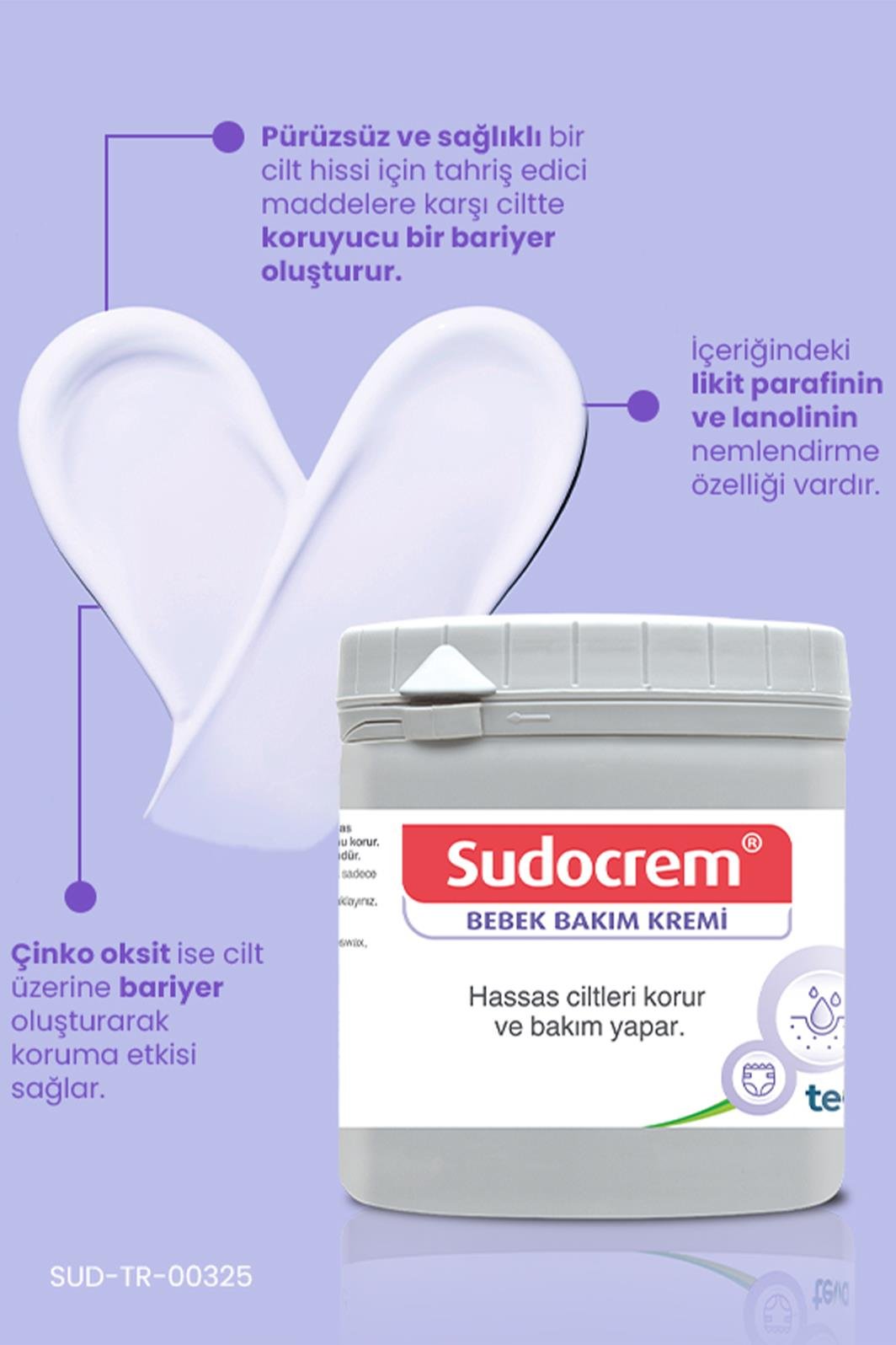 Tüm cilt tipleri için uygun bebek bakım kremi.